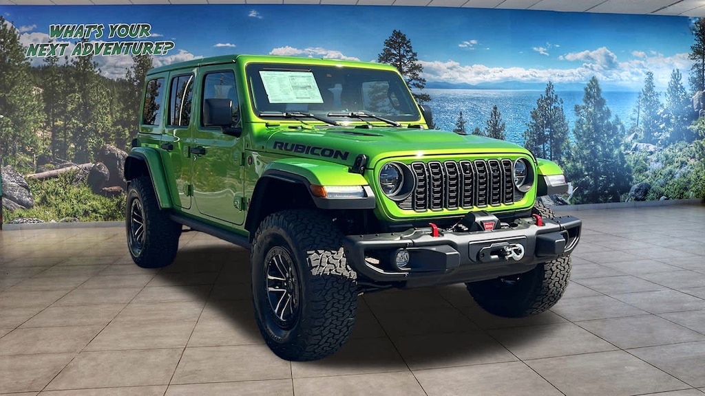 QUICK ORDER PACKAGE 24Y RUBICON X Engine: 3.6L V6 24V VVT UPG I w/ESS, Transmission: 8-Speed Automatic (850RE), Steel Front Bumper, Freedom Panel Storage Bag, Rear Window Defroster, Rear Window Wiper/Washer, ParkSense Rear Park Assist System, Auto High Beam Headlamp Control, Blind Spot & Cross Path Detection, SiriusXM Radio Service, 12.3 Touchscreen Display, Integrated Off-Road Camera, HD Radio, Rear View Auto Dim Mirror, Integrated Voice Command w/Bluetooth®, GPS Navigation, SiriusXM w/360L, Connected Travel & Traffic Services, Acoustic Laminated Front Door Glass, MOPAR Hinge-Gate Reinforcement, Acoustic Front Seat Area Carpet, Trailer Tow Prep Package, Xtreme 35 Tire Package, Tires: LT315/70R17C 113/110S, Anti-Lock 4-Wheel Disc Perf Brakes, 35 Tire Suspension, Wheels: 17 x 8 Machined, TRANSMISSION: 8-SPEED AUTOMATIC (850RE) Adaptive Cruise Control w/Stop, Selec-Speed Control, BODY COLOR 3-PIECE HARD TOP Freedom Panel Storage Bag, Rear Window Defroster, Rear Window Wiper/Washer, ENGINE: 3.6L V6 24V VVT UPG I W/ESS (STD). Jeep Rubicon X with Mojito Clearcoat exterior and Black interior features a V6 Cylinder Engine with 285 HP at 6400 RPM*.