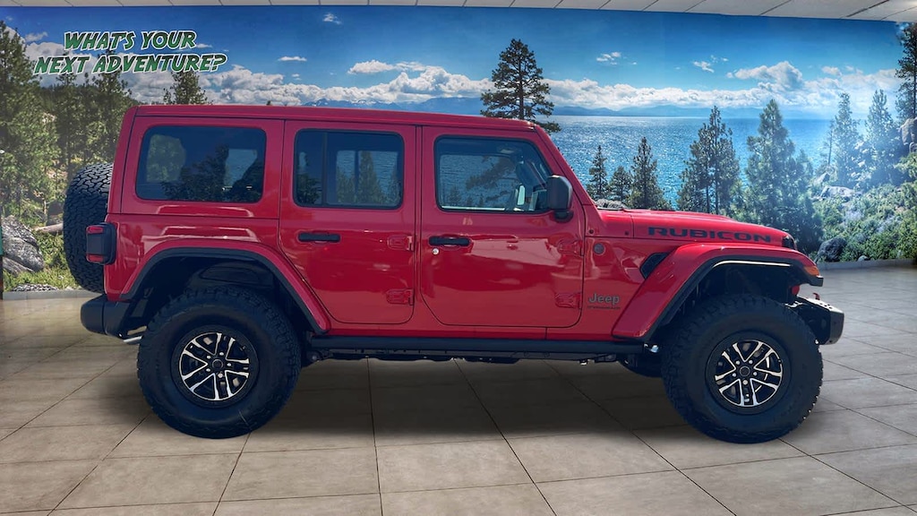 XTREME 35 TIRE PACKAGE Tires: LT315/70R17C 113/110S, Wheel Flare Extensions, MOPAR Tire Relocation Kit, Anti-Lock 4-Wheel Disc Perf Brakes, 35 Tire Suspension, MOPAR Hinge-Gate Reinforcement, MOPAR Jack Spacer, Wheels: 17 x 8 Machined w/Black Pockets, 4.56 Rear Axle Ratio, GVWR: 6,250 lbs, SKY 1-TOUCH POWER TOP Rear Window Defroster, Rear Window Wiper/Washer, Removable Rear Quarter Windows, Power Top Quarter Window Storage Bag, TRANSMISSION: 8-SPEED AUTOMATIC (850RE) Adaptive Cruise Control w/Stop, Selec-Speed Control, BLACK, NAPPA LEATHER SEATS Leather Wrapped Shift Knob, Premium Door Trim Panel, Power Adjust 8-Way Driver Seat, Power 4-Way Passenger Lumbar Adjust, Power Adjust 8-Way Front Passenger Seat, Leather Wrapped Park Brake Handle, Power 4-Way Driver Lumbar Adjust, ALPINE PREMIUM AUDIO SYSTEM, CONVENIENCE GROUP Heated Steering Wheel, Universal Garage Door Opener, Heated Front Seats, TECHNOLOGY GROUP SiriusXM Radio Service, 12.3 Touchscreen Display, Integrated Off-Road Camera, HD Radio, Rear View Auto Dim Mirror, Integrated Voice Command w/Bluetooth®, Radio: Uconnect 5 Nav w/12.3 Display, GPS Navigation, SiriusXM w/360L, Connected Travel & Traffic Services, ENGINE: 2.0L I4 DOHC DI TURBO W/ESS. Jeep Rubicon with Firecracker Red Clearcoat exterior and Black interior features a 4 Cylinder Engine with 270 HP at 5250 RPM*.