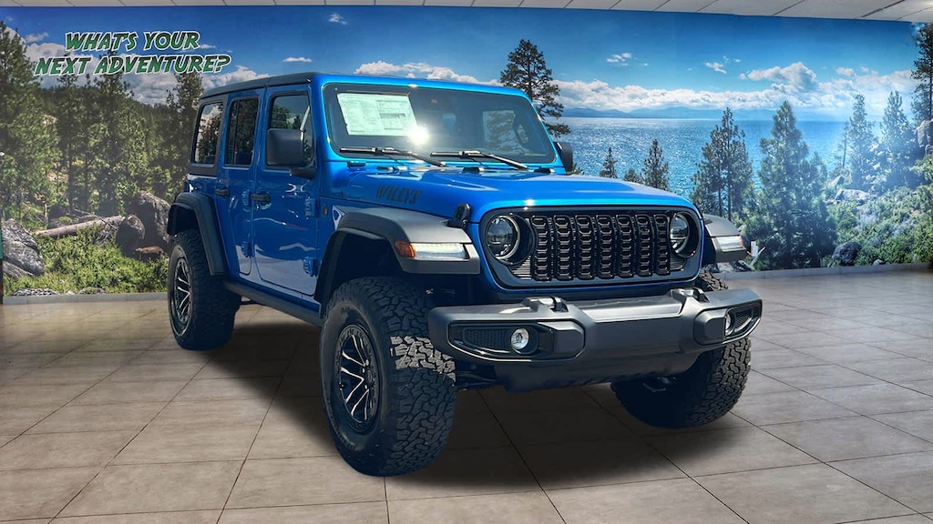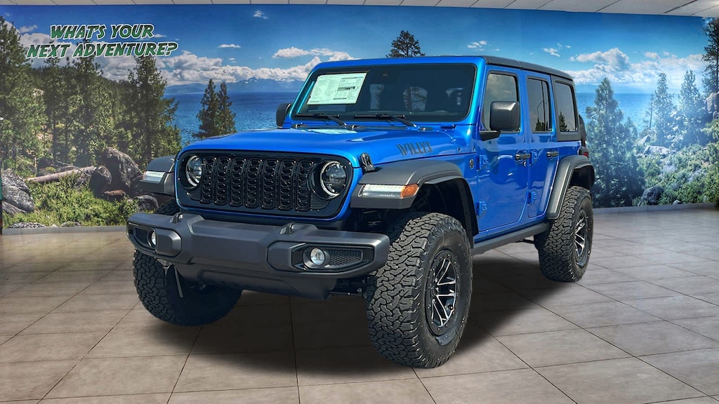 QUICK ORDER PACKAGE 24W WILLYS Engine: 3.6L V6 24V VVT UPG I w/ESS, Transmission: 8-Speed Automatic (850RE), 7 & 4 Pin Wiring Harness, Conventional Differential Front Axle, 4-Wheel Drive Swing Gate Decal, Black Grille, Injection Molded Black Rear Bumper, Dana M210 Wide HD Tube Front Axle, Daytime Running Lamps LED Accents, Front LED Fog Lamps, LED Premium Reflector Headlamps, E-Locker Rear Axle, Corning Gorilla Glass, Security Alarm, Class II Receiver Hitch, Mold In Color Bumper w/Gloss Black, Advanced Brake Assist, Automatic Headlamps, Off-Road Plus Mode, Willys Hood Decal, Full Speed Forward Collision Warning Plus, Rock Protection Sill Rails, 97 MPH Vehicle Max Speed Calibration, Power Heated Mirrors, Enhanced Adaptive Cruise Control, Auxiliary Switches, Dana M220 Wide Rear Axle, Molded, TRANSMISSION: 8-SPEED AUTOMATIC (850RE) Adaptive Cruise Control w/Stop, Anti-Lock 4-Wheel Disc Brakes, Integrated Radar Camera Module (IRCM), Dana M200 Rear Axle, Selec-Speed Control, XTREME 35 TIRE PACKAGE Tires: LT315/70R17C 113/110S, Wheel Flare Extensions, MOPAR Tire Relocation Kit, Anti-Lock 4-Wheel Disc Perf Brakes, Wheels: 17 x 8 Machined w/Black Pockets, 4.56 Rear Axle Ratio, Injection Molded Black Rear Bumper, 97 MPH Vehicle Max Speed Calibration, 35 Tire Suspension, MOPAR Hinge-Gate Reinforcement, Delete 4-Wheel Drive Swing Gate Decal, MOPAR Jack Spacer, Molded in Color Rubicon Highline Flare, GVWR: 6,250 lbs, BLACK 3-PIECE HARD TOP Freedom Panel Storage Bag, Rear Window Defroster, Rear Window Wiper/Washer, ALPINE PREMIUM AUDIO SYSTEM, ENGINE: 3.6L V6 24V VVT UPG I W/ESS (STD). Jeep Willys with Hydro Blue Pearlcoat exterior and Black interior features a V6 Cylinder Engine with 285 HP at 6400 RPM*. Approx. Original Base Sticker Price: $58,900*.