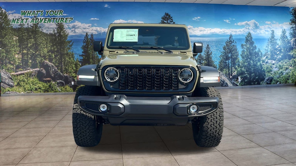 QUICK ORDER PACKAGE 24W WILLYS Engine: 3.6L V6 24V VVT UPG I w/ESS, Transmission: 8-Speed Automatic (850RE), 7 & 4 Pin Wiring Harness, Conventional Differential Front Axle, 4-Wheel Drive Swing Gate Decal, Black Grille, Injection Molded Black Rear Bumper, Dana M210 Wide HD Tube Front Axle, Daytime Running Lamps LED Accents, Front LED Fog Lamps, LED Premium Reflector Headlamps, E-Locker Rear Axle, Corning Gorilla Glass, Security Alarm, Class II Receiver Hitch, Mold In Color Bumper w/Gloss Black, Advanced Brake Assist, Automatic Headlamps, Off-Road Plus Mode, Willys Hood Decal, Full Speed Forward Collision Warning Plus, Rock Protection Sill Rails, 97 MPH Vehicle Max Speed Calibration, Power Heated Mirrors, Enhanced Adaptive Cruise Control, Auxiliary Switches, Dana M220 Wide Rear Axle, Molded, TRANSMISSION: 8-SPEED AUTOMATIC (850RE) Adaptive Cruise Control w/Stop, Anti-Lock 4-Wheel Disc Brakes, Integrated Radar Camera Module (IRCM), Dana M200 Rear Axle, Selec-Speed Control, XTREME 35 TIRE PACKAGE Tires: LT315/70R17C 113/110S, Wheel Flare Extensions, MOPAR Tire Relocation Kit, Anti-Lock 4-Wheel Disc Perf Brakes, Wheels: 17 x 8 Machined w/Black Pockets, 4.56 Rear Axle Ratio, Injection Molded Black Rear Bumper, 97 MPH Vehicle Max Speed Calibration, 35 Tire Suspension, MOPAR Hinge-Gate Reinforcement, Delete 4-Wheel Drive Swing Gate Decal, MOPAR Jack Spacer, Molded in Color Rubicon Highline Flare, GVWR: 6,250 lbs, BLACK 3-PIECE HARD TOP Freedom Panel Storage Bag, Rear Window Defroster, Rear Window Wiper/Washer, ENGINE: 3.6L V6 24V VVT UPG I W/ESS (STD). Jeep Willys with 41 exterior and Black interior features a V6 Cylinder Engine with 285 HP at 6400 RPM*. Approx. Original Base Sticker Price: $57,600*.