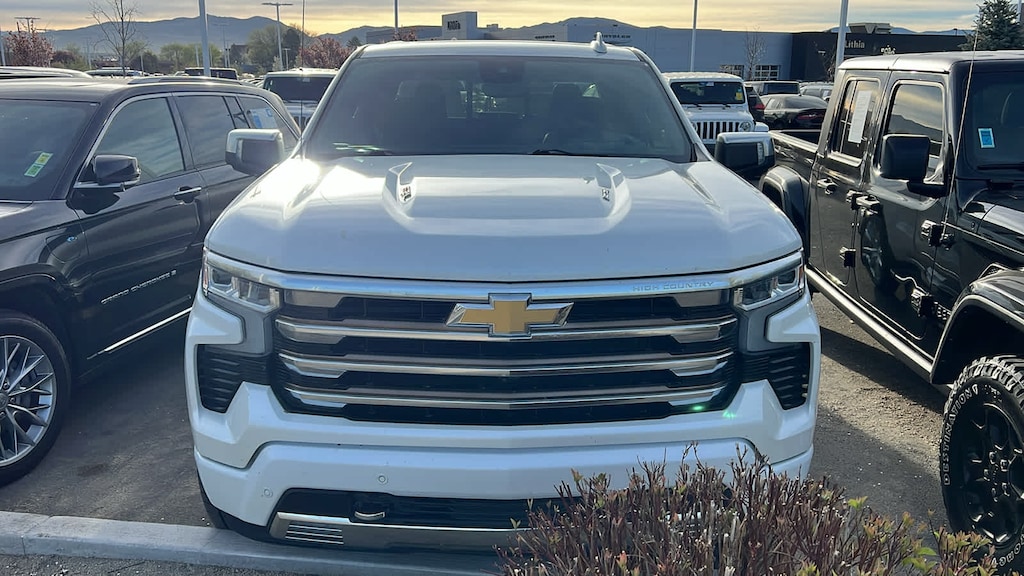 ENGINE, 6.2L ECOTEC3 V8 (420 hp [313 kW] @ 5600 rpm, 460 lb-ft of torque [624 Nm] @ 4100 rpm); featuring Dynamic Fuel Management that enables the engine to operate in 17 different patterns between 2 and 8 cylinders, depending on demand, to optimize power delivery and efficiency, HIGH COUNTRY PREMIUM PACKAGE includes (CF5) power sunroof, (RPT) 22 painted aluminum wheels with Chrome inserts, (XCE) 275/50R22SL all-season, blackwall tires and (RIA) floor liner, LPO, TECHNOLOGY PACKAGE includes (DRZ) Rear Camera Mirror and (UV6) 15 Diagonal Head-Up Display (Includes (KSG) Adaptive Cruise Control and (UGN) Enhanced Automatic Emergency Braking. Includes (UGN) Enhanced automatic Emergency Braking on vehicles built prior to 6-13-2022. Vehicles built on or after 6-13-2022 will include (UHY) Automatic Emergency Braking.), SUSPENSION PACKAGE, ADAPTIVE RIDE CONTROL, TAILGATE, MULTI-FLEX with six functional load/access features, NOTE: Auto release can be disabled if ball hitch is installed. See Owners manual for details, AUDIO SYSTEM, CHEVROLET INFOTAINMENT 3 PREMIUM SYSTEM with Google built-in, 13.4 diagonal HD color touchscreen, includes multi-touch display, AM/FM stereo, Bluetooth® streaming audio for music and most phones; featuring wireless Android Auto® and Apple CarPlay® capability for compatible phones, advanced voice recognition, in-vehicle apps, personalized profiles for infotainment and vehicle settings (STD), TRANSMISSION, 10-SPEED AUTOMATIC with Electronic Transmission Range Selector, (ETRS), electronically controlled with overdrive, tow/haul mode and steering column paddle shifters. Includes Cruise Grade Braking and Powertrain Grade Braking (STD). Chevrolet High Country with Iridescent Pearl Tricoat exterior and Jet Black interior features a 8 Cylinder Engine with 420 HP at 5600 RPM*.