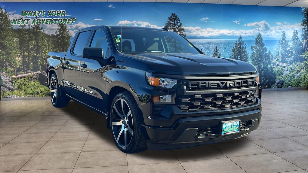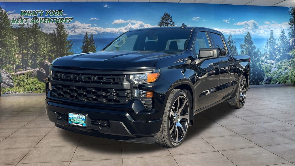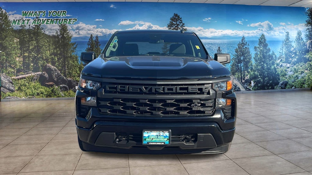 RALLY EDITION includes Black Rally Stripes (hood & tailgate), Black CHEVROLET tailgate lettering (inset), Black Silverado and trim level badging and (RVS) Black assist steps, LPO Includes (RD5) 20 High gloss Black painted aluminum wheels, Black Bowties (steering wheel horn pad and front grille), (CGN) Chevytec spray-on bedliner and (VTA) Black Chrome exhaust tip, LPO. AUDIO SYSTEM, CHEVROLET INFOTAINMENT 3 SYSTEM 7 diagonal HD color touchscreen, AM/FM stereo, Bluetooth® audio streaming for 2 active devices, voice command pass-through to phone, Wireless Apple CarPlay® and Wireless Android Auto® compatibility (STD), ENGINE, TURBOMAX (310 hp [231 kW] @ 5600 rpm, 430 lb-ft of torque [583 Nm] @ 3000 rpm) (STD), TRANSMISSION, 8-SPEED AUTOMATIC, ELECTRONICALLY CONTROLLED with overdrive and tow/haul mode. Includes Cruise Grade Braking and Powertrain Grade Braking (STD). Chevrolet Custom with Black exterior and Jet Black interior features a 4 Cylinder Engine with 310 HP at 5600 RPM*.