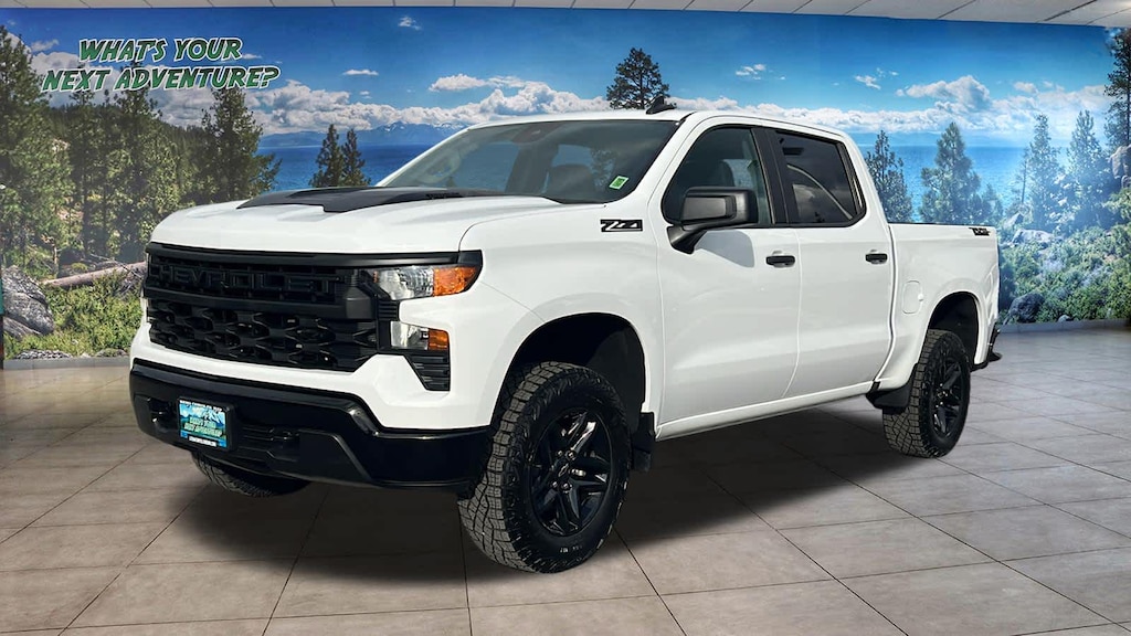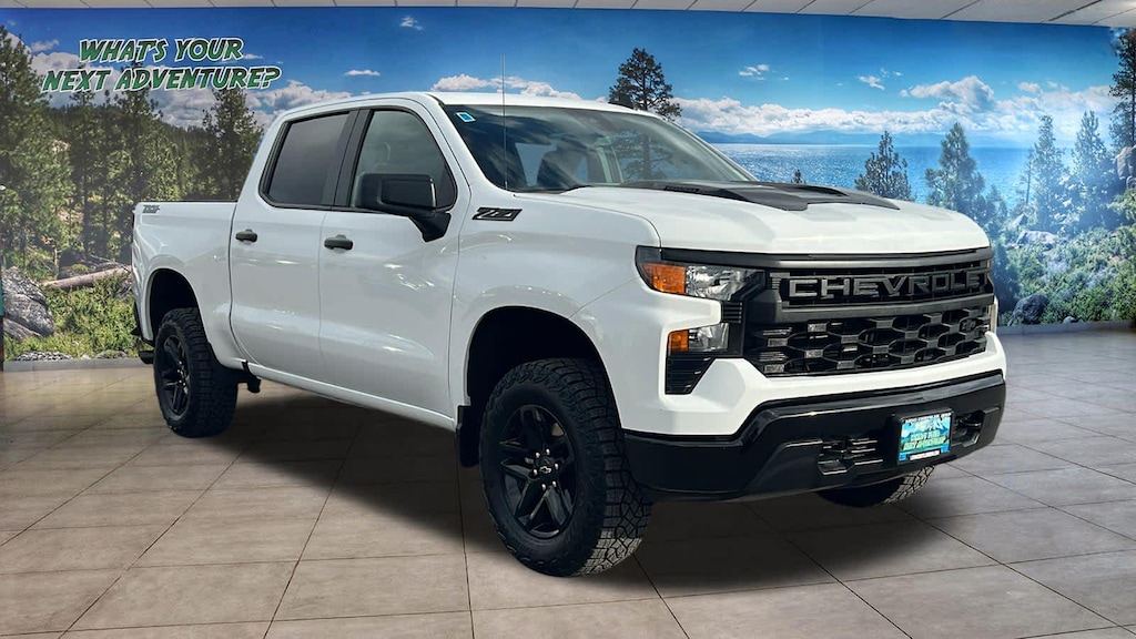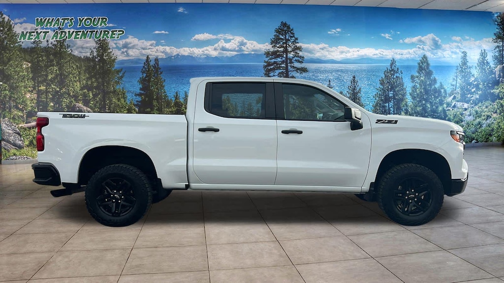 CHEVYTEC SPRAY-ON BEDLINER, BLACK (does not include spray-on liner on tailgate due to Black composite inner panel), TAILGATE, MULTI-FLEX with six functional load/access features, NOTE: Auto release can be disabled if ball hitch is installed. See Owners manual for details, AUDIO SYSTEM, CHEVROLET INFOTAINMENT 3 SYSTEM 7 diagonal HD color touchscreen, AM/FM stereo, Bluetooth® audio streaming for 2 active devices, voice command pass-through to phone, Wireless Apple CarPlay® and Wireless Android Auto® compatibility (STD), ENGINE, TURBOMAX (310 hp [231 kW] @ 5600 rpm, 430 lb-ft of torque [583 Nm] @ 3000 rpm) (STD), TRANSMISSION, 8-SPEED AUTOMATIC, ELECTRONICALLY CONTROLLED with overdrive and tow/haul mode. Includes Cruise Grade Braking and Powertrain Grade Braking (STD). Chevrolet Custom Trail Boss with Summit White exterior and Jet Black interior features a 4 Cylinder Engine with 310 HP at 5600 RPM*.