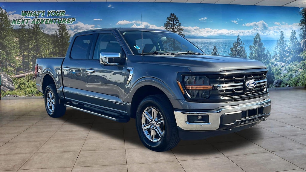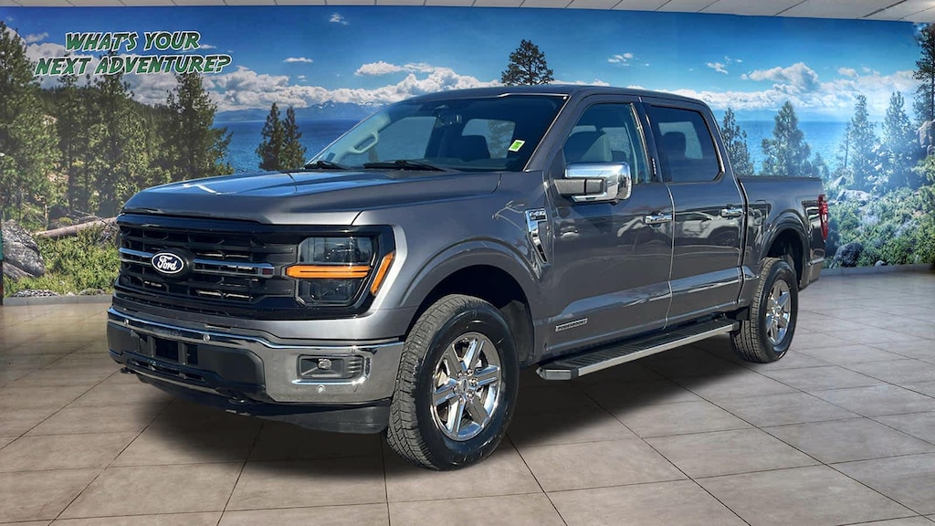 EQUIPMENT GROUP 302A MID Adaptive Cruise Control w/Stop & Go, lane centering, Speed Sign Recognition, Intelligent Access w/Push Button Start, approach detection, 400W Cab & Bed Outlets, Ford BlueCruise Equipped (90-Day Trial), See ford.com/bluecruise for version details, Power-Sliding Rear Window, Remote Start System w/Remote Tailgate Release, Heated Front Seats, Power Glass Heated Sideview Mirrors, manual folding, turn signals, high-intensity LED security approach lamps, LED sideview mirror spotlights and chrome skull caps, Auto-Dimming Rearview Mirror, ENGINE: 3.5L POWERBOOST FULL-HYBRID V6 Pro Power Onboard 2.4KW and removes 36 gallon fuel tank, GVWR: 7,400 lbs Payload Package, Electronic Locking w/3.73 Axle Ratio, TOUGH BED SPRAY-IN BEDLINER. Ford XLT with Carbonized Gray exterior and Medium Dark Slate interior features a V6 Cylinder Engine with 430 HP at 6000 RPM*.