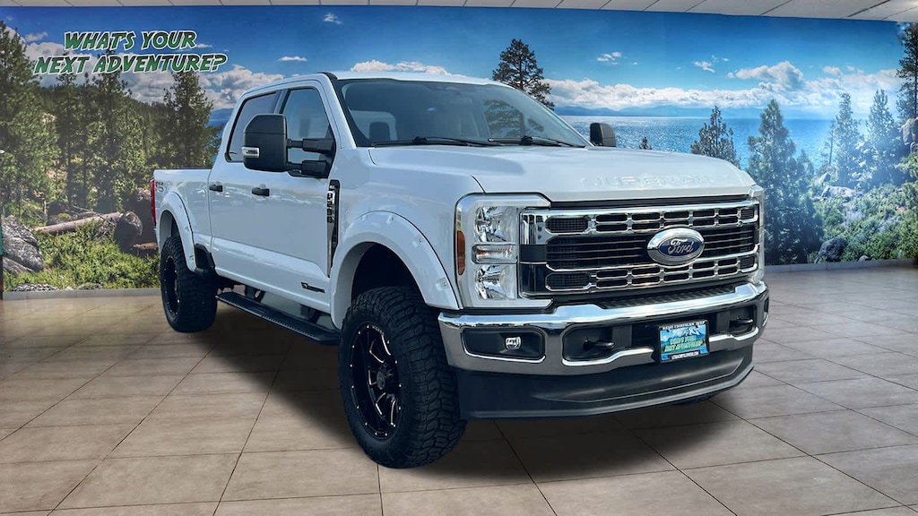 ENGINE: 6.7L 4V OHV POWER STROKE V8 TURBO DIESEL B20 manual push-button engine-exhaust braking, Operator Commanded Regeneration (OCR) and intelligent oil-life monitor, 34 Gallon Fuel Tank, 3.31 Axle Ratio, Dual 68 AH/65 AGM Batteries, PLATFORM RUNNING BOARDS, ELECTRONIC-LOCKING W/3.31 AXLE RATIO, TIRES: LT275/70RX18E BSW Automatic Transmission (4) Spare may not be the same as road tire, TRANSMISSION: TORQSHIFT 10-SPEED AUTOMATIC SelectShift and selectable drive modes: normal, eco, slippery roads, tow/haul and off-road (STD). Ford XLT with Oxford White exterior and Medium Dark Slate interior features a 8 Cylinder Engine with 475 HP at 2600 RPM*.