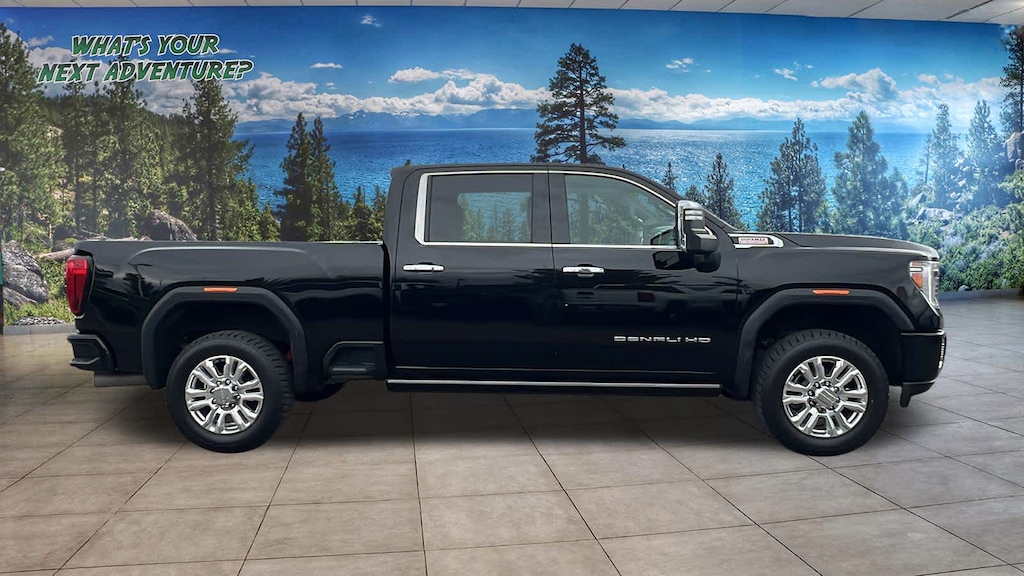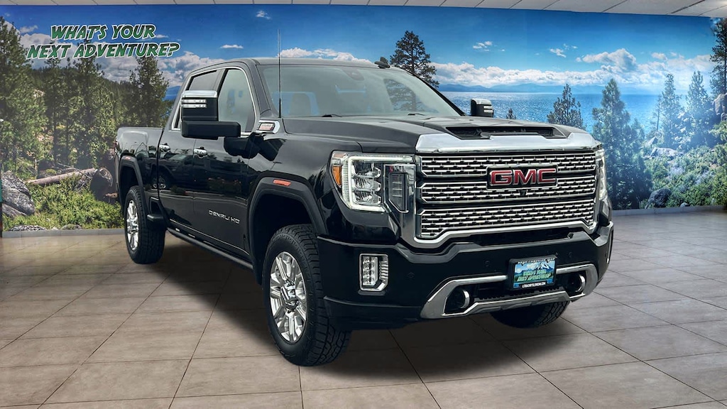 ENGINE, DURAMAX 6.6L TURBO-DIESEL V8, B20-DIESEL COMPATIBLE (445 hp [332 kW] @ 2800 rpm, 910 lb-ft of torque [1220 Nm] @ 1600 rpm) (Includes (K05) engine block heater.), TECHNOLOGY PACKAGE includes (DRZ) Rear Camera Mirror and (UV6) Multi-color 15 Diagonal Head-Up Display, ASSIST STEPS, POWER-RETRACTABLE with LED perimeter lighting and bright accent, GOOSENECK / 5TH WHEEL PREP PACKAGE -- Hitch platform to accept Gooseneck or 5th Wheel hitch. Includes hitch platform with tray to accept ball, stamped bed holes with removable caps installed and bed mounted 7-pin trailer harness (similar to UY2 harness). AUDIO SYSTEM, PREMIUM GMC INFOTAINMENT SYSTEM WITH NAVIGATION AND 8 DIAGONAL COLOR TOUCH-SCREEN includes multi-touch display, AM/FM stereo, Bluetooth® streaming audio for music and most phones; featuring wireless Android Auto® and Apple CarPlay® capability for compatible phones, advanced voice recognition, in-vehicle apps, personalized profiles for infotainment and vehicle settings. Includes greater memory. (STD) (Includes (PZ8) Hitch Guidance with hitch view.), TRANSMISSION, ALLISON 10-SPEED AUTOMATIC. GMC Denali with Onyx Black exterior and Jet Black interior features a 8 Cylinder Engine with 401 HP at 5200 RPM*.