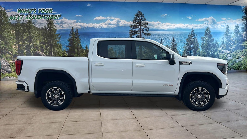 TECHNOLOGY PACKAGE includes (DRZ) Rear Camera Mirror and (UV6) Multicolor 15 Diagonal Head-Up Display (Includes (UVN) Bed View Camera.), ENGINE, 6.2L ECOTEC3 V8 (420 hp [313 kW] @ 5600 rpm, 460 lb-ft of torque [624 Nm] @ 4100 rpm); featuring Dynamic Fuel Management, SUNROOF, POWER, AT4 PREFERRED PACKAGE includes (UG1) Universal Home Remote and (A48) rear sliding power window, LPO, ALL-WEATHER FLOOR LINERS, 1ST AND 2ND ROWS (includes AT4 logo), AUDIO SYSTEM, 13.4 DIAGONAL PREMIUM GMC INFOTAINMENT SYSTEM WITH GOOGLE BUILT IN APPS SUCH AS NAVIGATION AND VOICE ASSISTANCE, INCLUDES COLOR TOUCH-SCREEN, MULTI-TOUCH DISPLAY, AM/FM STEREO Bluetooth® streaming audio for music and most phones; featuring wireless Android Auto® and Apple CarPlay® capability for compatible phones (STD), TRANSMISSION, 10-SPEED AUTOMATIC WITH ELECTRONIC PRECISION SHIFT, ELECTRONICALLY CONTROLLED with overdrive, and tow/haul mode and steering column paddle shifters. Includes Cruise Grade Braking and Powertrain Grade Braking. GMC AT4 with SUMMIT WHITE exterior and JET BLACK WITH KALAHARI ACCENTS interior features a 8 Cylinder Engine with 420 HP at 5600 RPM*.