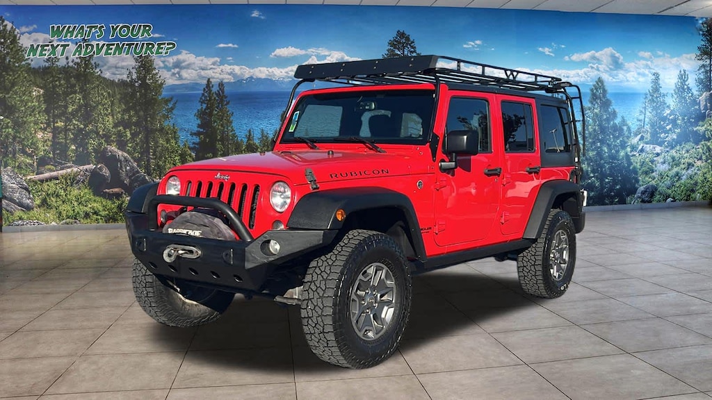 TRANSMISSION: 5-SPEED AUTOMATIC (W5A580) Tip Start, 3.73 Rear Axle Ratio, Hill Descent Control, BLACK 3-PIECE HARD TOP Freedom Panel Storage Bag, Rear Window Defroster, Rear Window Wiper/Washer, Delete Sunrider Soft Top, ALPINE 9-SPEAKER W/ALL WEATHER SUBWOOFER Amplified 552W 9 speaker, including subwoofer, CONNECTIVITY GROUP Vehicle Information Center, Remote USB Port, Uconnect Voice Command w/Bluetooth®, Tire Pressure Monitoring Display, MAX TOW PACKAGE Class II Receiver Hitch, Trailer Tow w/4-Pin Connector Wiring, ENGINE: 3.6L V6 24V VVT (STD). Jeep Rubicon with Firecracker Red Clearcoat exterior and Black interior features a V6 Cylinder Engine with 285 HP at 6400 RPM*.
