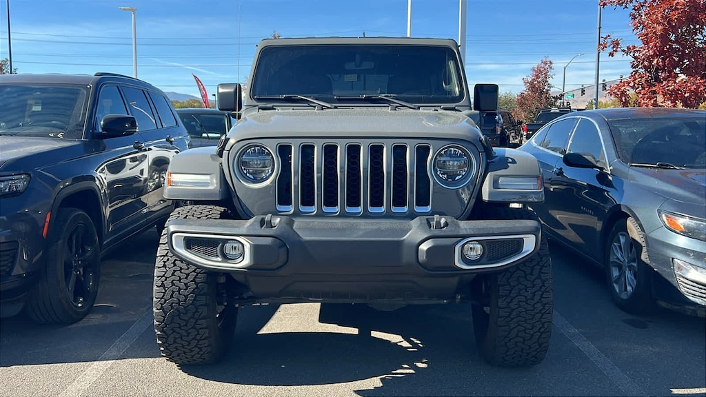 BLACK 3-PIECE HARD TOP Freedom Panel Storage Bag, Rear Window Defroster, Rear Window Wiper/Washer, No Soft Top, COLD WEATHER GROUP Heated Steering Wheel, Remote Start System, Heated Front Seats, SAFETY GROUP Blind Spot & Cross Path Detection, ParkSense Rear Park Assist System, REMOTE PROXIMITY KEYLESS ENTRY, TRANSMISSION: 8-SPEED AUTO 8P75PH PHEV (STD), ENGINE: 2.0L I4 DOHC DI TURBO PHEV (STD). Jeep Unlimited Sahara with Sting-Gray Clearcoat exterior and Black interior features a 4 Cylinder Engine with 375 HP at 5250 RPM*.