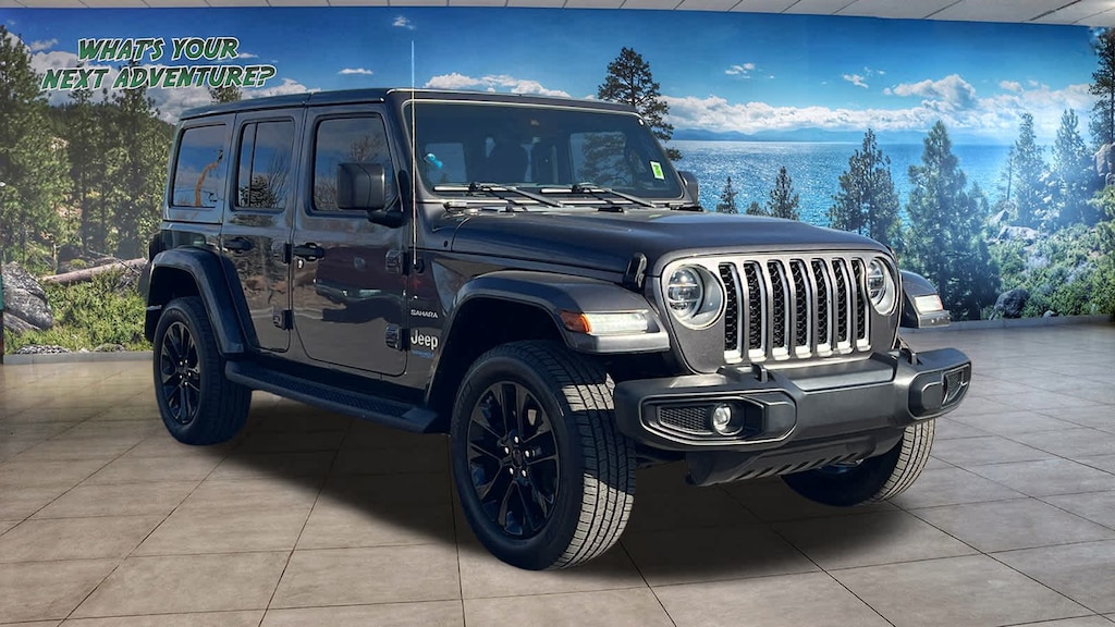 BODY COLOR 3-PIECE HARD TOP Freedom Panel Storage Bag, Rear Window Defroster, Rear Window Wiper/Washer, COLD WEATHER GROUP Heated Steering Wheel, Remote Start System, Heated Front Seats, SAFETY GROUP Blind Spot & Cross Path Detection, ParkSense Rear Park Assist System, ADVANCED SAFETY GROUP Adaptive Cruise Control w/Stop, Advanced Brake Assist, Auto High Beam Headlamp Control, Full Speed Forward Collision Warning Plus, REMOTE PROXIMITY KEYLESS ENTRY, TRANSMISSION: 8-SPEED AUTO 8P75PH PHEV (STD), ENGINE: 2.0L I4 DOHC DI TURBO PHEV (STD). Jeep Unlimited Sahara with Granite Crystal Metallic Clearcoat exterior and Black interior features a 4 Cylinder Engine with 375 HP at 5250 RPM*.