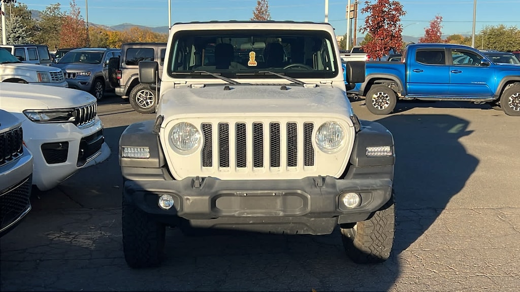 TRANSMISSION: 8-SPEED AUTOMATIC (850RE) Anti-Lock 4-Wheel Disc Brakes, BLACK 3-PIECE HARD TOP Freedom Panel Storage Bag, Rear Window Defroster, Rear Window Wiper/Washer, No Soft Top, ANTI-SPIN DIFFERENTIAL REAR AXLE, DEEP TINT SUNSCREEN WINDOWS, ENGINE: 2.0L I4 DOHC DI TURBO W/ESS. Jeep Sport with Bright White Clearcoat exterior and Black interior features a 4 Cylinder Engine with 270 HP at 5250 RPM*.