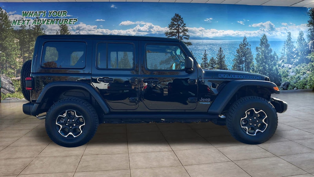 SKY 1-TOUCH POWER TOP Rear Window Defroster, Rear Window Wiper/Washer, Removable Rear Quarter Windows, Power Top Quarter Window Storage Bag, TRAILER TOW & HD ELECTRICAL GROUP Class II Receiver Hitch, 700 Amp Maintenance Free Battery, 7 & 4 Pin Wiring Harness, Auxiliary Switches, TRANSMISSION: 8-SPEED AUTO 8P75PH PHEV (STD), ENGINE: 2.0L I4 DOHC DI TURBO PHEV (STD). Jeep Unlimited Rubicon with Black Clearcoat exterior and Black interior features a 4 Cylinder Engine with 375 HP at 5250 RPM*.