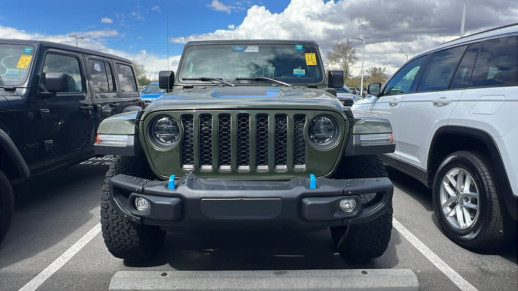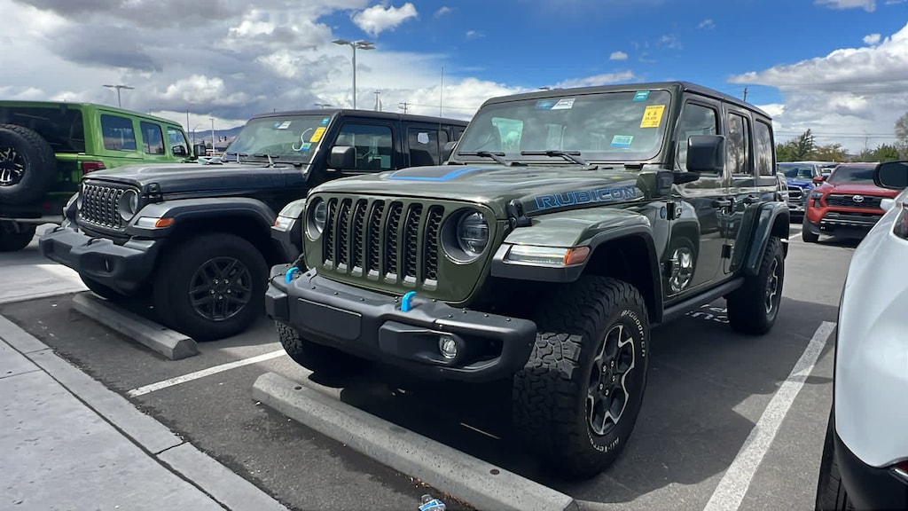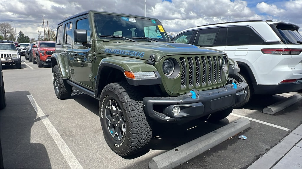 BLACK 3-PIECE HARD TOP Freedom Panel Storage Bag, Rear Window Defroster, Rear Window Wiper/Washer, COLD WEATHER GROUP Heated Steering Wheel, Remote Start System, Heated Front Seats, TRAILER TOW & AUX SWITCH GROUP Class II Receiver Hitch, 700 Amp Maintenance Free Battery, 7 & 4 Pin Wiring Harness, Auxiliary Switches, TRANSMISSION: 8-SPEED AUTO 8P75PH PHEV (STD), ENGINE: 2.0L I4 DOHC DI TURBO PHEV (STD). Jeep Rubicon with Sarge Green Clearcoat exterior and Black interior features a 4 Cylinder Engine with 375 HP at 5250 RPM*.