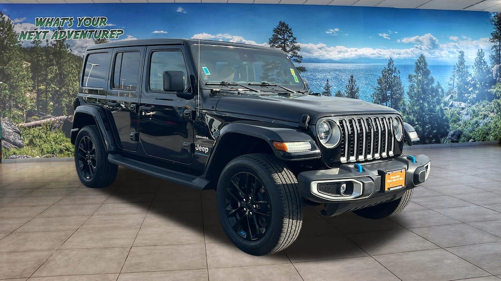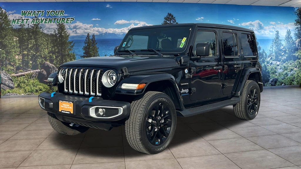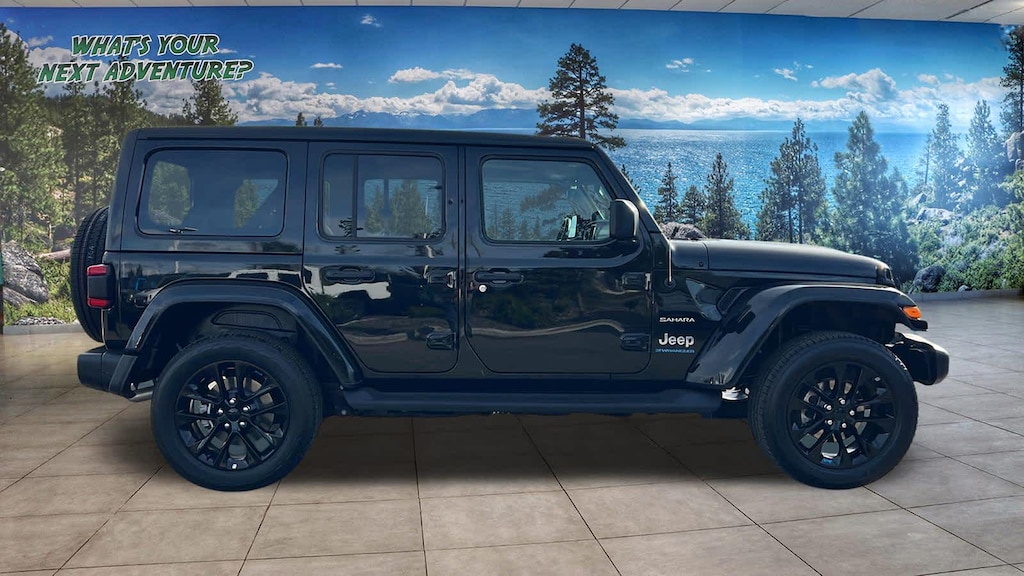 SKY 1-TOUCH POWER TOP Rear Window Defroster, Rear Window Wiper/Washer, Removable Rear Quarter Windows, Power Top Quarter Window Storage Bag, SAFETY GROUP Blind Spot & Cross Path Detection, ParkSense Rear Park Assist System, ADVANCED SAFETY GROUP Adaptive Cruise Control w/Stop, Advanced Brake Assist, Auto High Beam Headlamp Control, Full Speed Forward Collision Warning Plus, TRANSMISSION: 8-SPEED AUTO 8P75PH PHEV (STD), ENGINE: 2.0L I4 DOHC DI TURBO PHEV (STD). Jeep Sahara with Black Clearcoat exterior and Dark Saddle/Black interior features a 4 Cylinder Engine with 375 HP at 5250 RPM*.