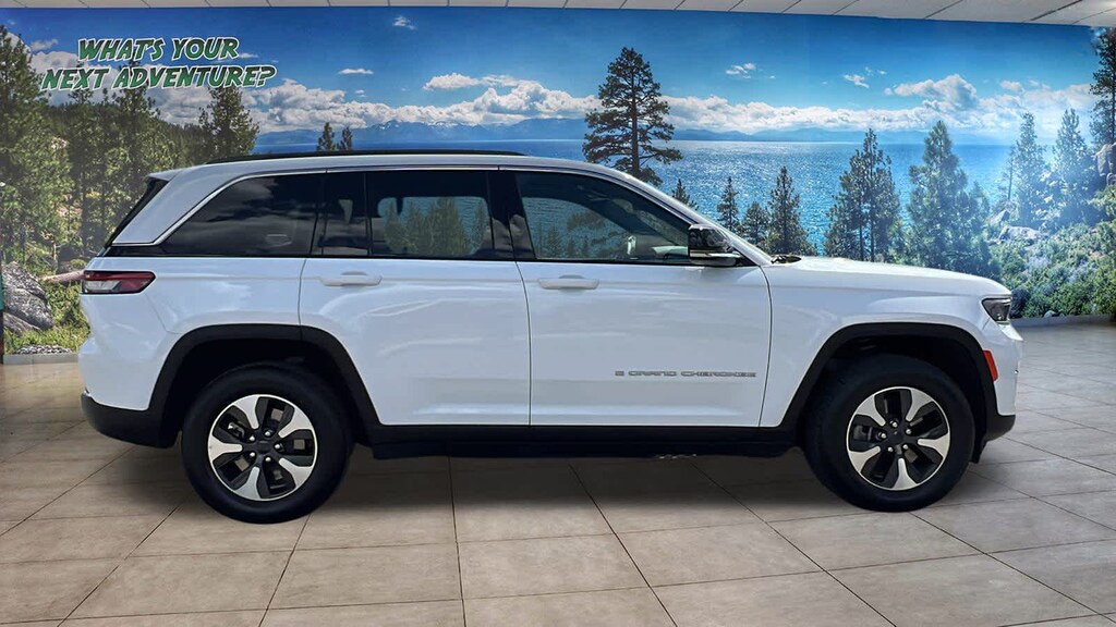 TRANSMISSION: 8-SPEED AUTOMATIC 8P75PH PHEV (STD), ENGINE: 2.0L I4 DOHC DI TURBO PHEV (STD). Jeep Grand Cherokee 4xe with Bright White Clearcoat exterior and Global Black interior features a 4 Cylinder Engine with 375 HP at 5250 RPM*.