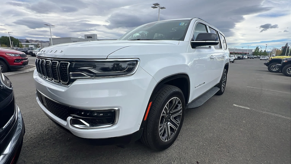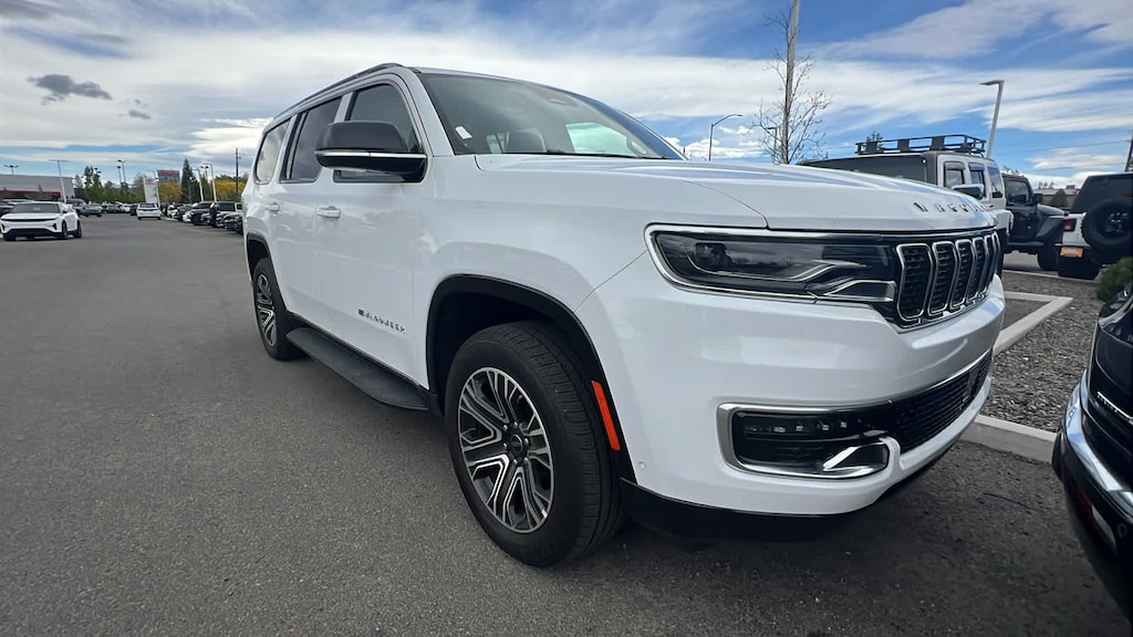 TRANSMISSION: 8-SPEED AUTOMATIC (8HP75) (STD), ENGINE: 3.0L I6 HURRICANE SO TWIN TURBO ESS (STD). Jeep Wagoneer with Bright White Clearcoat exterior and Sea Salt/Black interior features a Straight 6 Cylinder Engine with 420 HP at 5200 RPM*.