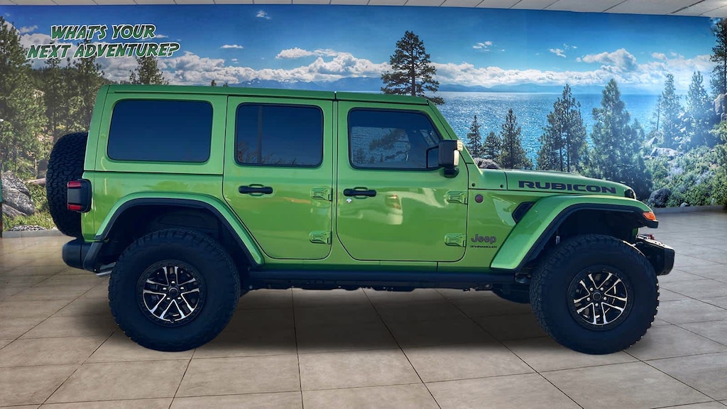 QUICK ORDER PACKAGE 24Y RUBICON X Engine: 3.6L V6 24V VVT UPG I w/ESS, Transmission: 8-Speed Automatic (850RE), Steel Front Bumper, Freedom Panel Storage Bag, Rear Window Defroster, Rear Window Wiper/Washer, ParkSense Rear Park Assist System, Auto High Beam Headlamp Control, Blind Spot & Cross Path Detection, SiriusXM Radio Service, 12.3 Touchscreen Display, Integrated Off-Road Camera, HD Radio, Rear View Auto Dim Mirror, Integrated Voice Command w/Bluetooth®, GPS Navigation, SiriusXM w/360L, Connected Travel & Traffic Services, Acoustic Laminated Front Door Glass, MOPAR Hinge-Gate Reinforcement, Acoustic Front Seat Area Carpet, Trailer Tow Prep Package, Xtreme 35 Tire Package, Tires: LT315/70R17C 113/110S, Anti-Lock 4-Wheel Disc Perf Brakes, 35 Tire Suspension, Wheels: 17 x 8 Machined, TRANSMISSION: 8-SPEED AUTOMATIC (850RE) Adaptive Cruise Control w/Stop, Selec-Speed Control, BODY COLOR 3-PIECE HARD TOP Freedom Panel Storage Bag, Rear Window Defroster, Rear Window Wiper/Washer, ENGINE: 3.6L V6 24V VVT UPG I W/ESS (STD). Jeep Rubicon X with Mojito Clearcoat exterior and Black interior features a V6 Cylinder Engine with 285 HP at 6400 RPM*.