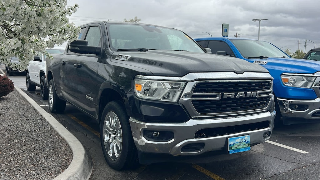 BIG HORN LEVEL 1 EQUIPMENT GROUP Google Android Auto®, Bluetooth® Handsfree Phone & Audio, USB Host Flip, Rear Window Defroster, Integrated Center Stack Radio, Rear View Auto Dim Mirror, For More Info, Call 800-643-2112, Rear Power Sliding Window, Rear Dome w/On/Off Switch Lamp, Front Fog Lamps, Connectivity - US/Canada, Glove Box Lamp, 4G LTE Wi-Fi Hot Spot, Auto Dim Exterior Driver Mirror, Heated Front Seats, Radio: Uconnect 5 W w/8.4 Display, Heated Steering Wheel, 8.4 Touchscreen Display, Class IV Receiver Hitch, Black Premium Power Mirrors, Apple CarPlay®, Big Horn IP Badge, SiriusXM Satellite Radio, Exterior Mirrors w/Supplemental Signals, Exterior Mirrors Courtesy Lamps, Passenger Sun Visor w/Illuminated Mirror, Electric Shift On Demand Transfer Case, Power-Folding Mirrors, 2nd Row, WHEELS: 20 X 9 ALUMINUM CHROME CLAD, RADIO: UCONNECT 5 NAV W/8.4 DISPLAY Google Android Auto®, USB Host Flip, Disassociated Touchscreen Display, HD Radio, Integrated Center Stack Radio, For More Info, Call 800-643-2112, Connectivity - US/Canada, Air Conditioning ATC w/Dual Zone Control, GPS Navigation, 4G LTE Wi-Fi Hot Spot, SiriusXM w/360L, All Radio Equipped Vehicles, Connected Travel & Traffic Services, All R1 High Radios, 8.4 Touchscreen Display, Apple CarPlay®, LEVEL 1 SAFETY GROUP Advanced Brake Assist, Pedestrian Emergency Braking, Full Speed Forward Collision Warning Plus, Lane Keep Assist, BLACK, DELUXE CLOTH BUCKET SEATS Power 8-Way Driver Seat, Center Console Parts Module, Bucket Seats, Manual Adjust 4-Way Front Passenger Seat, Full Length Floor Console, Rear Center Armrest, Power 2-Way Driver Lumbar Adjust, TRANSMISSION: 8-SPEED AUTOMATIC (8HP75) (STD), ENGINE: 5.7L V8 HEMI MDS VVT ETORQUE (STD). Ram Big Horn with Diamond Black Crystal Pearlcoat exterior and Black interior features a 8 Cylinder Engine with 395 HP at 5600 RPM*.