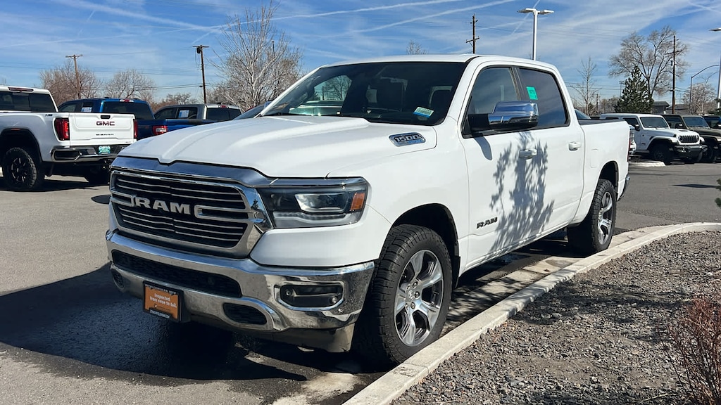 LARAMIE LEVEL B EQUIPMENT GROUP Rear Window Defroster, Blind Spot & Cross Path Detection, Rain Sensitive Windshield Wipers, ParkSense Front/Rear Park Assist w/Stop, Rear Power Sliding Window, 12 Touchscreen Display, Rear Underseat Compartment Storage, Front LED Fog Lamps, LED Reflector Headlamps, Foam Bottle Insert (Door Trim Panel), Radio: Uconnect 5 Nav w/12.0 Display, Remote Tailgate Release, harman/kardon® 19 Speaker Premium Sound, Auto High Beam Headlamp Control, Electric Shift On Demand Transfer Case, Front Door Accent Lighting, 2nd Row In Floor Storage Bins, Rear Door Accent Lighting, ENGINE: 5.7L V8 HEMI MDS VVT ETORQUE Active Noise Control System, Heavy Duty Engine Cooling, Passive Tuned Mass Damper, GVWR: 7,100 lbs, Dual Rear Exhaust w/Bright Tips, HEMI Badge, 23 Gallon Fuel Tank, 18 Aluminum Spare Wheel, ADVANCED SAFETY GROUP Adaptive Cruise Control w/Stop & Go, Auto High Beam Headlamp Control, Surround View Camera System, Parallel & Perp Park Assist w/Stop, Tailgate Ajar Warning Lamp, Pedestrian Emergency Braking, Lane Keep Assist, DUAL-PANE PANORAMIC SUNROOF LED Dome/Reading Lamp, Dome Dual LED Reading Lamp, WHEELS: 20 X 9 PREMIUM PAINT/POLISHED Tires: 275/55R20 OWL All Season, BLACK, LEATHER TRIMMED BUCKET SEATS Bucket Seats, Center Console Parts Module, Full Length Upgraded Floor Console, TECHNOLOGY GROUP Head Up Display, LED CHMSL Lamp, Digital Rearview Mirror, CLASS IV RECEIVER HITCH, TRANSMISSION: 8-SPEED AUTOMATIC (8HP75). Ram Laramie with Bright White Clearcoat exterior and Black interior features a 8 Cylinder Engine with 395 HP at 5600 RPM*.