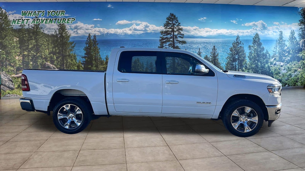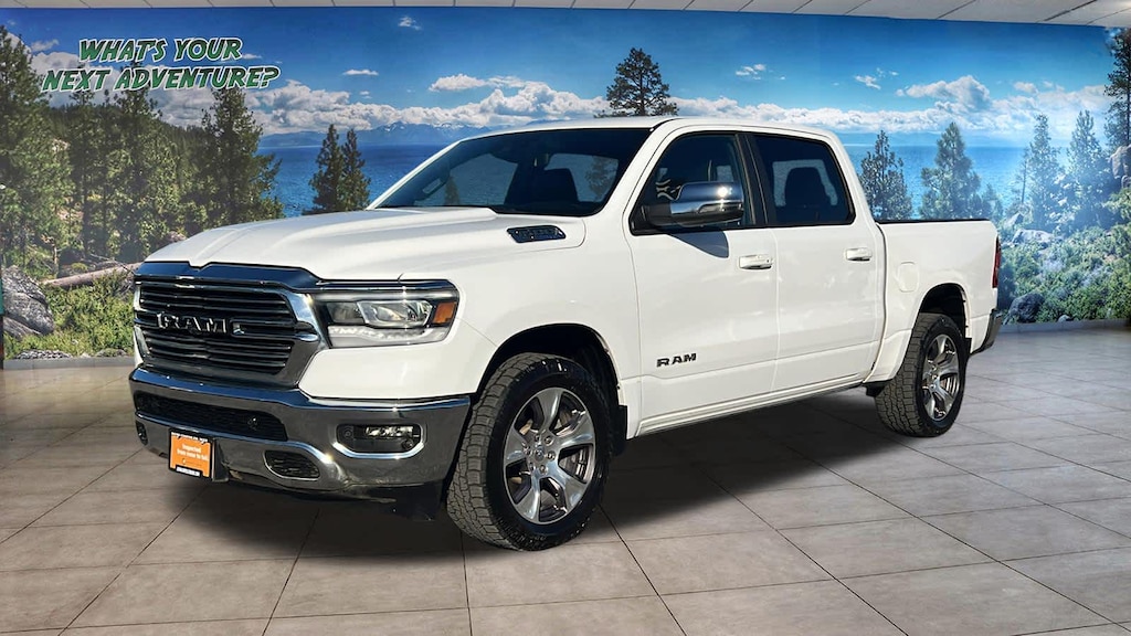 LARAMIE LEVEL B EQUIPMENT GROUP Rear Window Defroster, Blind Spot & Cross Path Detection, Rain Sensitive Windshield Wipers, ParkSense Front/Rear Park Assist w/Stop, Rear Power Sliding Window, 12 Touchscreen Display, Rear Underseat Compartment Storage, Front LED Fog Lamps, LED Reflector Headlamps, Foam Bottle Insert (Door Trim Panel), Radio: Uconnect 5 Nav w/12.0 Display, Remote Tailgate Release, harman/kardon® 19 Speaker Premium Sound, Auto High Beam Headlamp Control, Electric Shift On Demand Transfer Case, Front Door Accent Lighting, 2nd Row In Floor Storage Bins, Rear Door Accent Lighting, ENGINE: 5.7L V8 HEMI MDS VVT ETORQUE Active Noise Control System, Heavy Duty Engine Cooling, Passive Tuned Mass Damper, GVWR: 7,100 lbs, Dual Rear Exhaust w/Bright Tips, HEMI Badge, 23 Gallon Fuel Tank, 18 Aluminum Spare Wheel, ADVANCED SAFETY GROUP Adaptive Cruise Control w/Stop & Go, Auto High Beam Headlamp Control, Surround View Camera System, Parallel & Perp Park Assist w/Stop, Tailgate Ajar Warning Lamp, Pedestrian Emergency Braking, Lane Keep Assist, DUAL-PANE PANORAMIC SUNROOF LED Dome/Reading Lamp, Dome Dual LED Reading Lamp, WHEELS: 20 X 9 PREMIUM PAINT/POLISHED Tires: 275/55R20 OWL All Season, BLACK, LEATHER TRIMMED BUCKET SEATS Bucket Seats, Center Console Parts Module, Full Length Upgraded Floor Console, TECHNOLOGY GROUP Head Up Display, LED CHMSL Lamp, Digital Rearview Mirror, CLASS IV RECEIVER HITCH, TRANSMISSION: 8-SPEED AUTOMATIC (8HP75). Ram Laramie with Bright White Clearcoat exterior and Black interior features a 8 Cylinder Engine with 395 HP at 5600 RPM*.