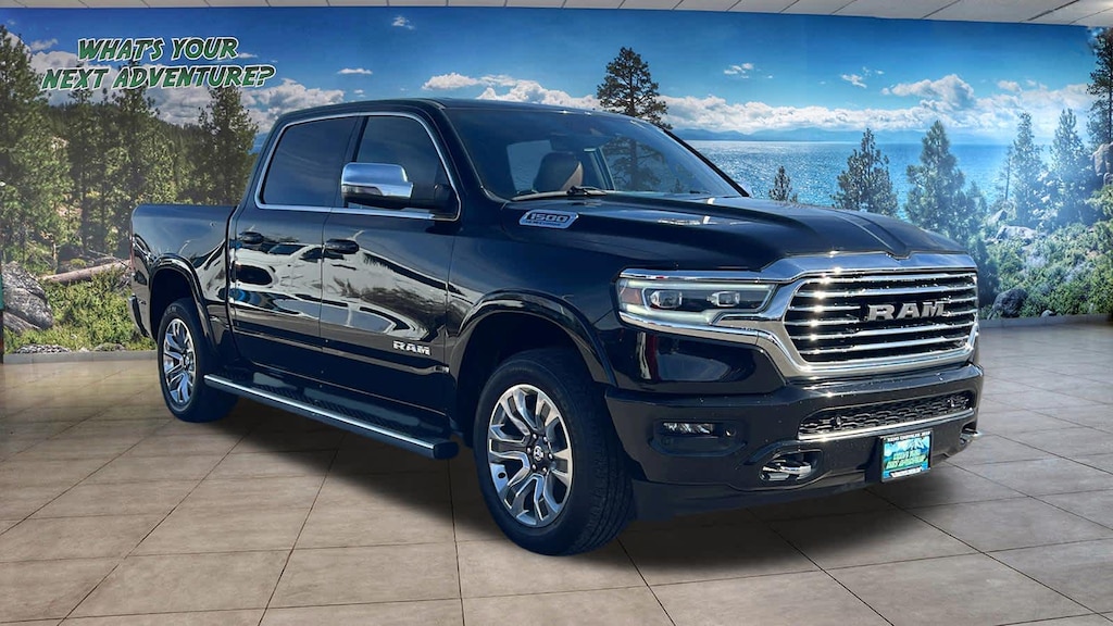 ENGINE: 5.7L V8 HEMI MDS VVT ETORQUE Active Noise Control System, Heavy Duty Engine Cooling, Passive Tuned Mass Damper, GVWR: 7,100 lbs, Dual Rear Exhaust w/Bright Tips, HEMI Badge, 18 Aluminum Spare Wheel, 4-CORNER AIR SUSPENSION, DUAL-PANE PANORAMIC SUNROOF LED Dome/Reading Lamp, Dome Dual LED Reading Lamp, ANTI-SPIN DIFFERENTIAL REAR AXLE, TRANSMISSION: 8-SPEED AUTOMATIC (8HP75). Ram Longhorn with Diamond Black Crystal Pearlcoat exterior and Black/New Saddle interior features a 8 Cylinder Engine with 395 HP at 5600 RPM*.