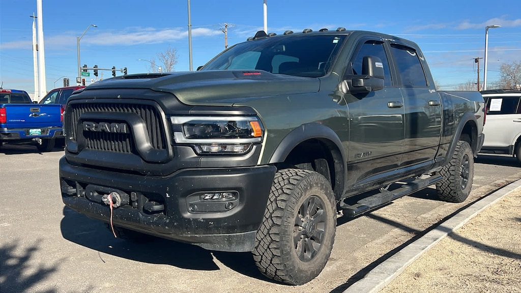 LEVEL 1 EQUIPMENT GROUP Power Adjustable Pedals w/Memory, For Details, Visit DriveUconnect.com, For More Info, Call 800-643-2112, 12 Touchscreen Display, Auto Power-Folding Mirrors, Mirror Running Lights, Alexa Built-In, Security Alarm, Power Adjustable Convex Aux Mirrors, Premium Overhead Console, Forward & Reverse Utility Lights, 9 Alpine Speakers w/Subwoofer, Disassociated Touchscreen Display, LED Interior Lighting, LED Dome Lamp w/On/Off Switch, Rear Window Defroster, Rain Sensitive Windshield Wipers, Rear Power Sliding Window, Body Color Door Handles, GPS Navigation, Overhead LED Lamps, Exterior Mirrors w/Heating Element, Auto Dim Exterior Mirror, SiriusXM w/360L, Connected Travel & Traffic Services, Off-Road Information Pages, Selectable Tire Fill Alert, Trailer Tow Pages, HD Radio, BLIND SPOT & CROSS PATH DETECTION, TRANSMISSION: 8-SPEED AUTO (8HP75-LCV) (STD), ENGINE: 6.4L V8 HEAVY DUTY HEMI MDS (STD). Ram Power Wagon with Olive Green Pearlcoat exterior and Black interior features a 8 Cylinder Engine with 410 HP at 5600 RPM*.