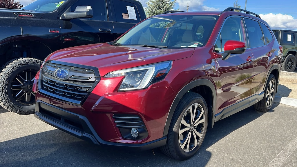 NAV & harman/kardon® & RAB & HEATED STEERING WHEEL Reverse Automatic Braking System (RAB), Heated Steering Wheel, Radio: Subaru Starlink 8.0 Multimedia Nav System, AM/FM stereo HD Radio w/single-disc CD player, MP3/WMA/CRR/RW file capability, multi-touch gesture high resolution display screen, voice activated controls, Bluetooth® audio streaming, hands-free phone connectivity and hands-free SMS text messaging connectivity (refer to subaru.com for cell phone compatibility), Near Field Communication (NFC), iPod control capability, SiriusXM All Access radio (4 months free trial/subscription required after), smartphone integration for AHA, Android Auto®, Apple CarPlay®, Pandora and Starlink cloud applications (refer to subaru.com for app availability), USB and Over The Air (OTA) audio system, EXTERIOR & INTERIOR AUTO-DIMMING MIRROR Auto-Dimming Exterior Mirror w/Approach Light, Part number J201SFL301, Auto-Dimming Mirror w/Compass & HomeLink, Part number H501SSJ000. Subaru Limited with Crimson Red Pearl exterior and Gray interior features a 4 Cylinder Engine with 182 HP at 5800 RPM*.